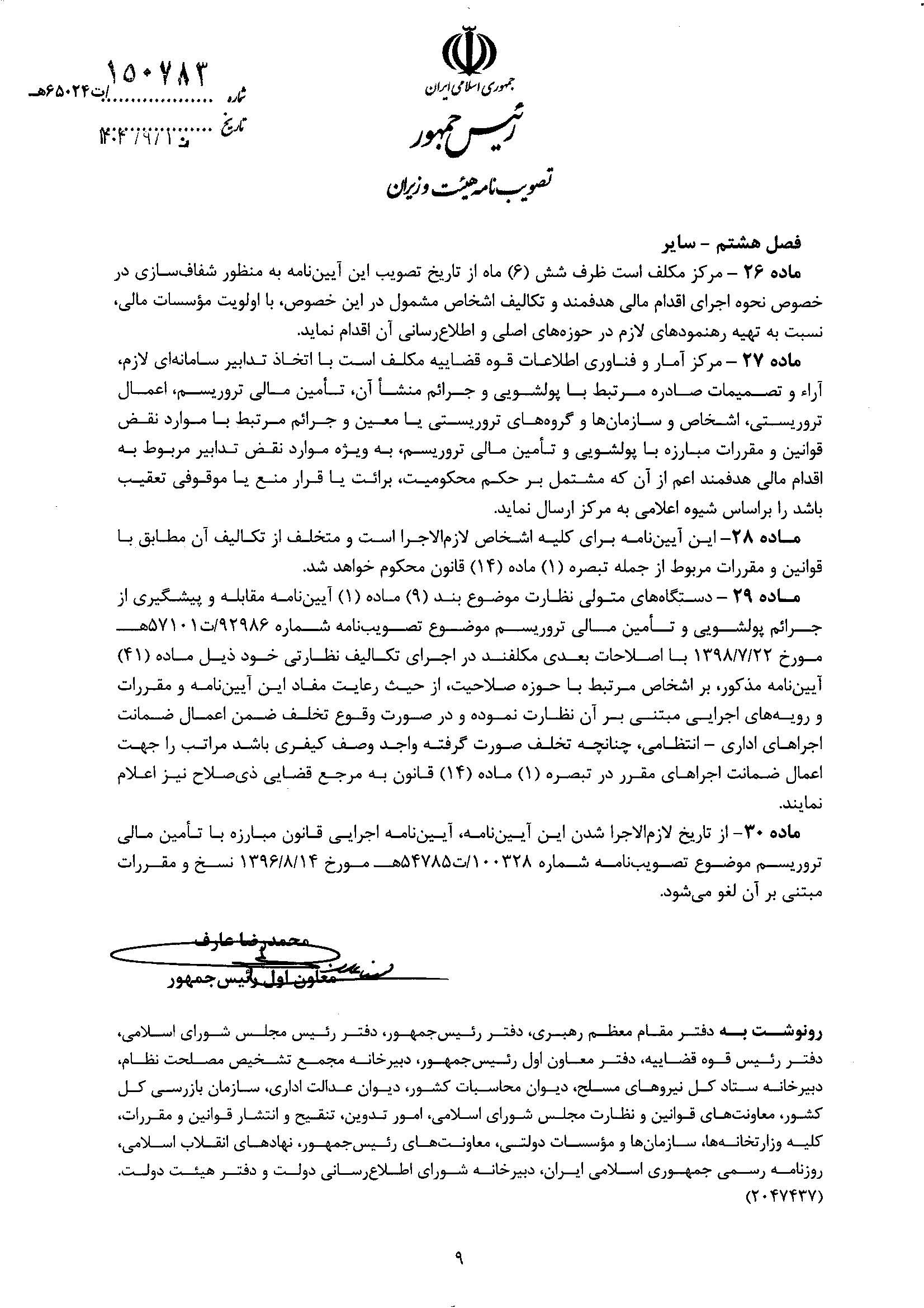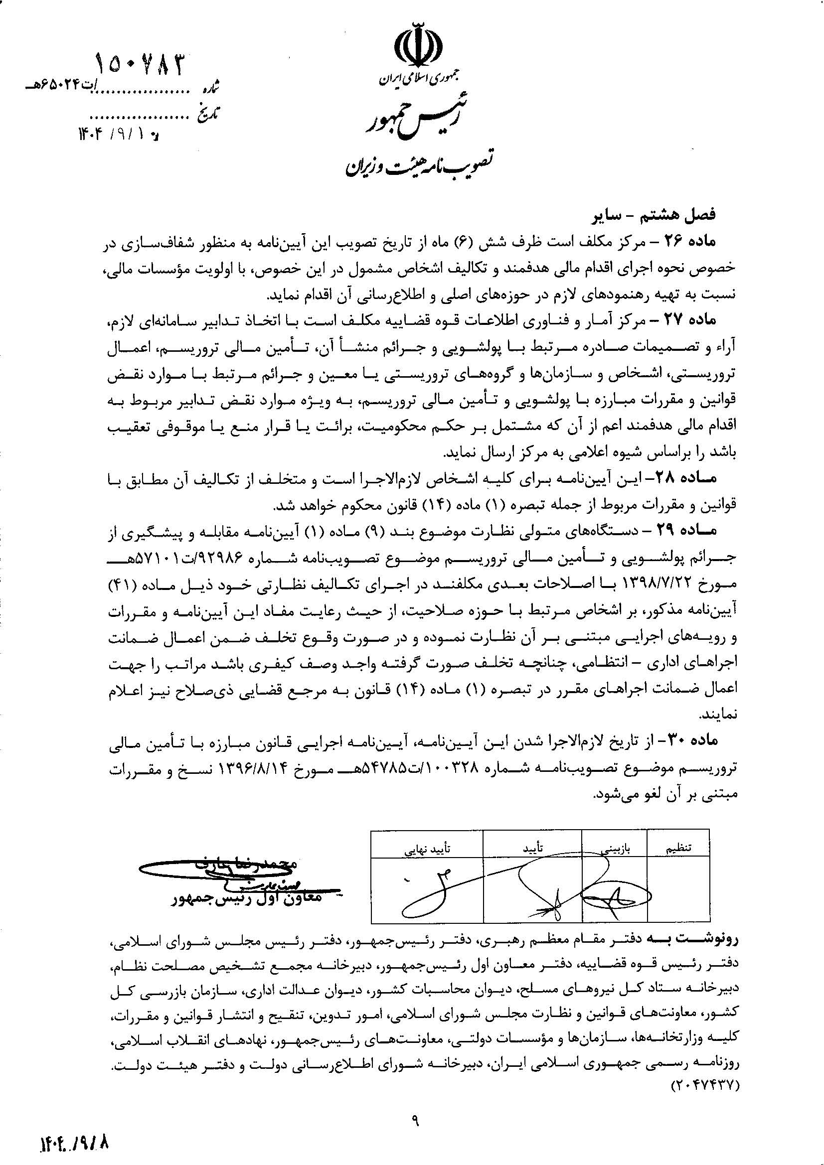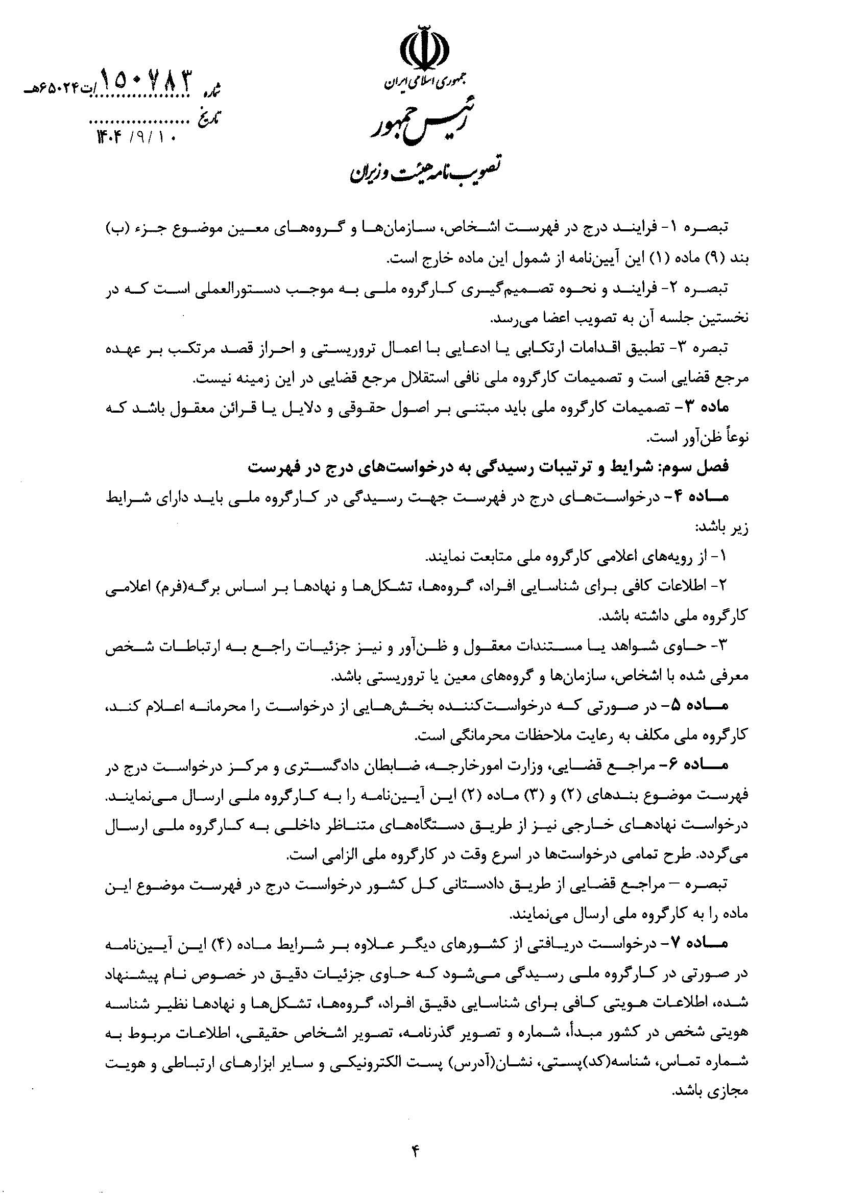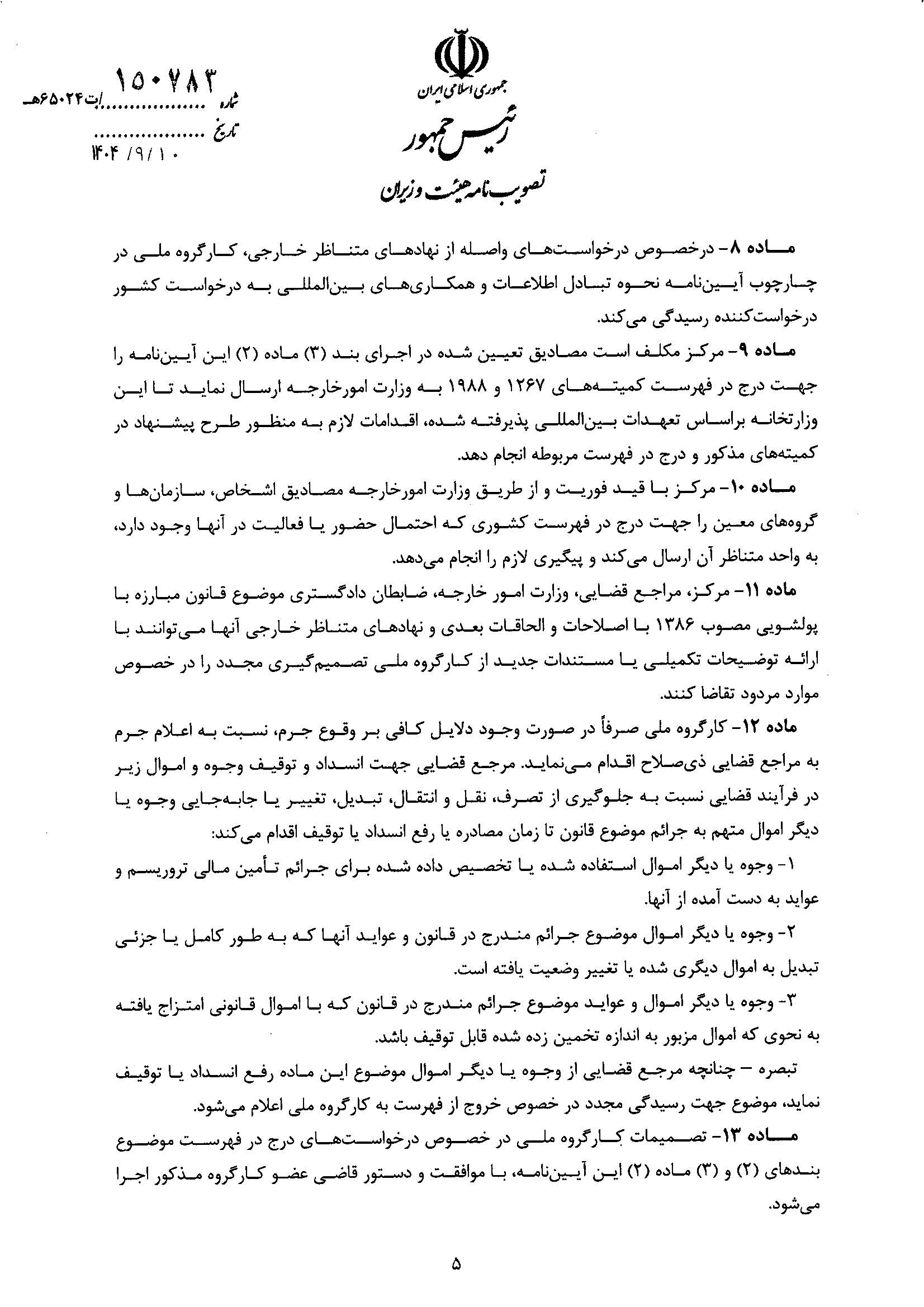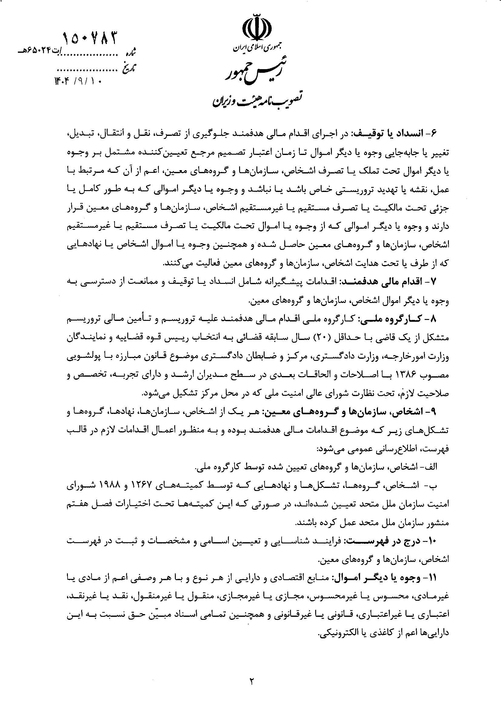 بنابر اعلام اتاق ایران، آیین نامه اجرایی اقدام مالی هدفمند علیه تروریسم و تأمین مالی تروریسم، از سوی هیات وزیران تصویب شد.