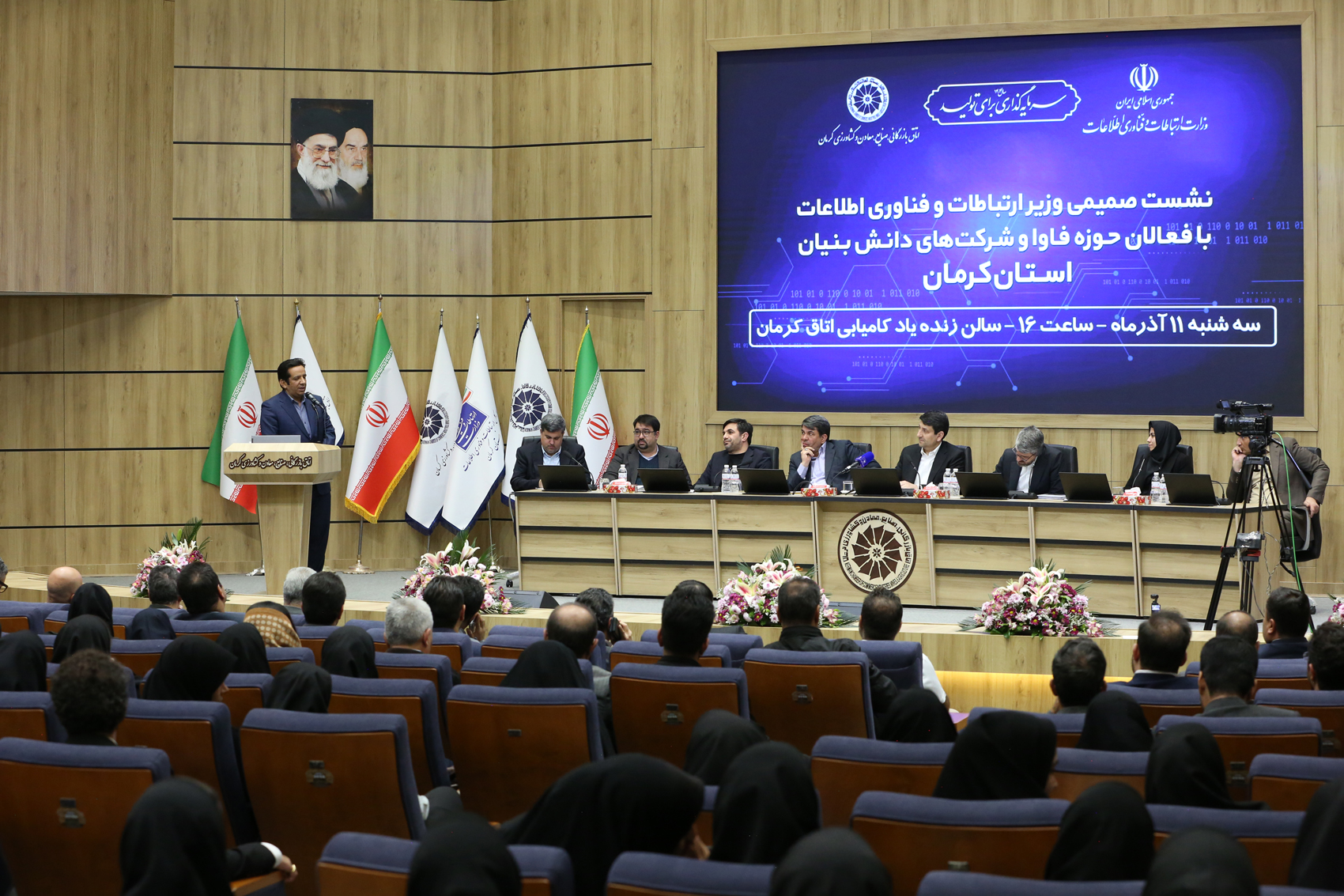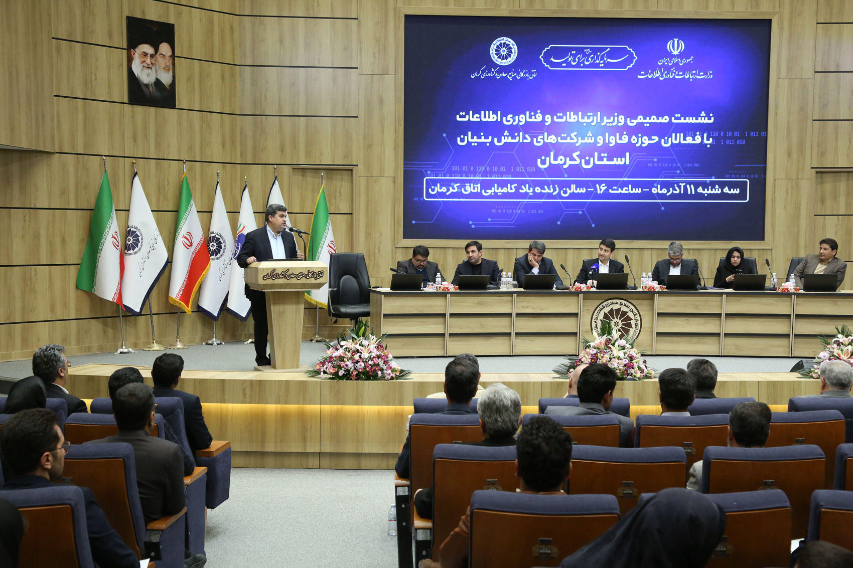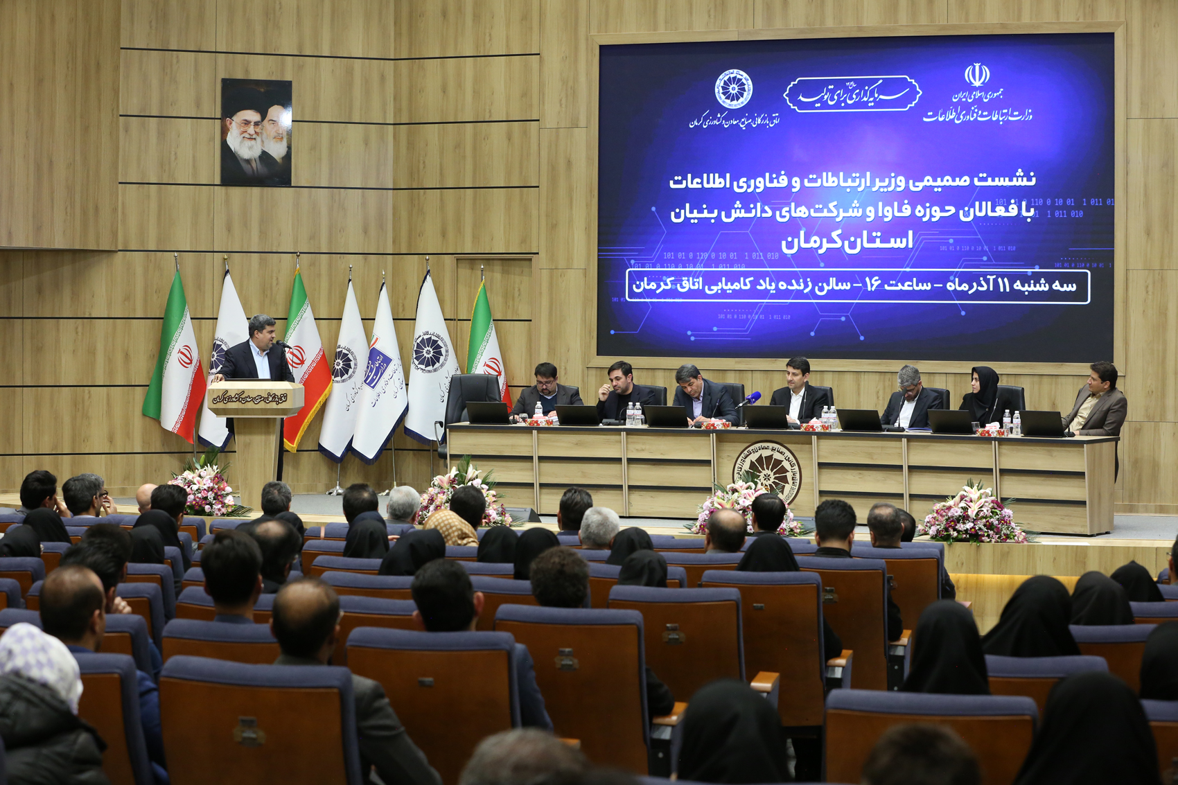 وزیر ارتباطات و فناوری اطلاعات نیز در بخش پایانی این نشست ضمن ابراز خرسندی برای هم افزایی و همراهی شکل گرفته بین اتاق کرمان، نظام صنفی امور رایانه ای(نصر)، اتحادیه ها و انجمن های فاوا در استان، افزود: این همدلی امیدوارکننده و فرصتی برای استان کرمان است. سیدستار هاشمی، در ادامه به مشکل آنتن دهی در استان اشاره کرد و گفت: این موضوع را در حضور سران قوا نیز مطرح کرده ایم که کیفیت اینترنت آسیب دیده و آن هم به دلیل مسدود سازی و محدودیت های ایجاد شده است و همه تلاش ما بر این است که کیفیت اینترنت و شبکه آسیب دیده را به شرایط مورد نیاز کسب و کارها برگردانیم.