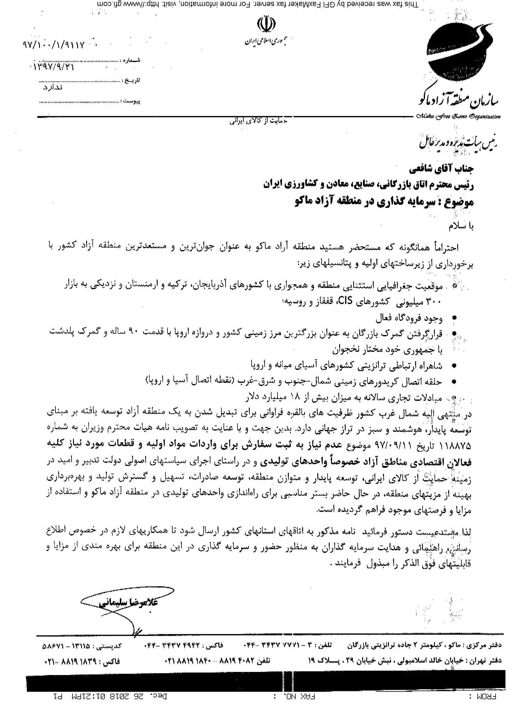 سازمان منطقه آزاد ماکو زیرساخت ها و پتانسیل های این منطقه را برای اطلاع سرمایه گذاران اعلام کرده که جزئیات آن در زیر آمده است.