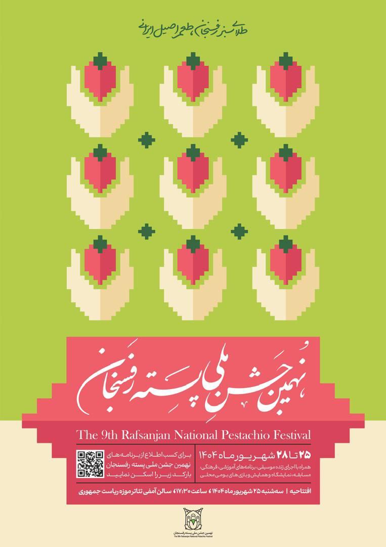 گفتنی است، جشن ملی پسته هر ساله با هدف پاسداشت نام و جایگاه رفسنجان به عنوان قطب نخست تولید پسته جهان برگزار می‌شود. در آستانه برگزاری نهمین دوره این جشن، از پوستر رسمی این رویداد ملی در محل دفتر اتاق کرمان در رفسنجان رونمایی شد. این پوستر با الهام از رنگ و طرح پسته طراحی شده و تصویر9 پسته در آن، نمادی از نهمین سال برگزاری این جشن بزرگ در شهرستان رفسنجان است.