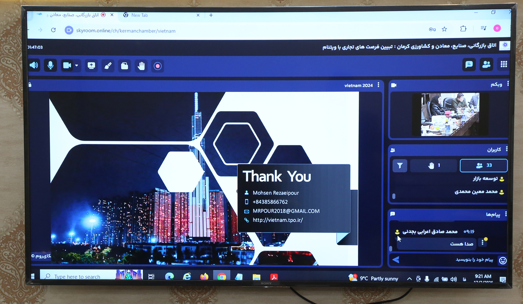 در ادامه رایزن بازرگانی ایران در ویتنام که به صورت مجازی در این نشست شرکت داشت، به معرفی و ارائه گزارشی از ژئوپولوتیک ویتنام، حجم تجارت این کشور و ظرفیت های صادراتی و وارداتی آن پرداخت و ادامه داد: از مجموع کالاهایی وارداتی ویتنام می توانیم سهم 14 میلیارد دلار را به خود اختصاص دهیم. محسن رضایی پور، فولاد، پسته و پتروشیمی را از جمله زمینه های مناسب برای صادرات به ویتنام عنوان کرد و گفت: مهمترین صادرات ایران به ویتنام خشکبار به ویژه خرما و پسته به عنوان محصولات استراتژیک کرمان است که باید از این فرصت استفاده کرد زیرا کرمان را یکی از استان های توانمند برای صادرات به اروپا در حوزه خرما، پسته، گل محمدی و گلاب می دانیم.